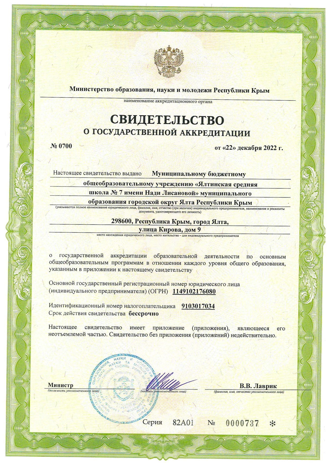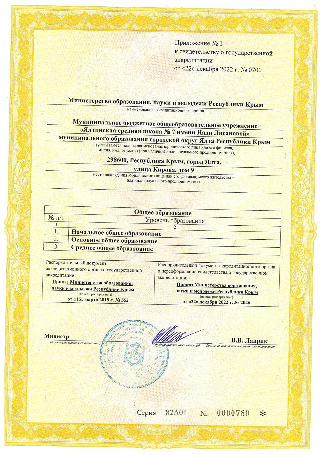 Муниципальное бюджетное общеобразовательное учреждение «Ялтинская средняя школа № 7 имени Нади Лисановой» муниципального округа город-курорт Ялта Республики Крым