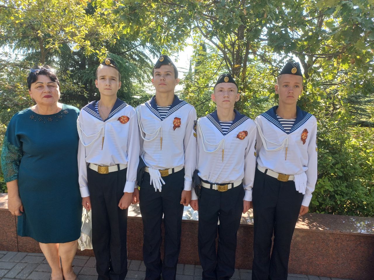 Почётный Наряд кадетских морских классов Ялтинской школы №7 совместно с директором школы Майей Виссарионовной Бышевой и учителем ОБЗР Владимиром Александровичем Яковлевым принял участие в открытии осеннего этапа "Вахты Памяти поколений Пост №1"!