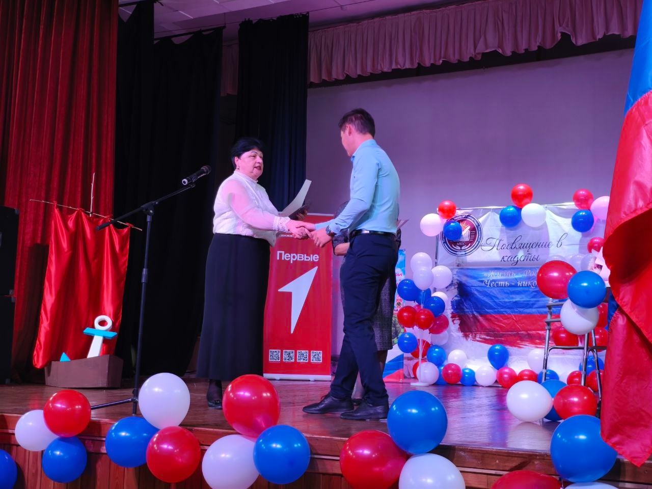 Советник директора по воспитанию благодарит санаторий Кирова за предоставление зала для проведения столь значимого события в жизни школы.