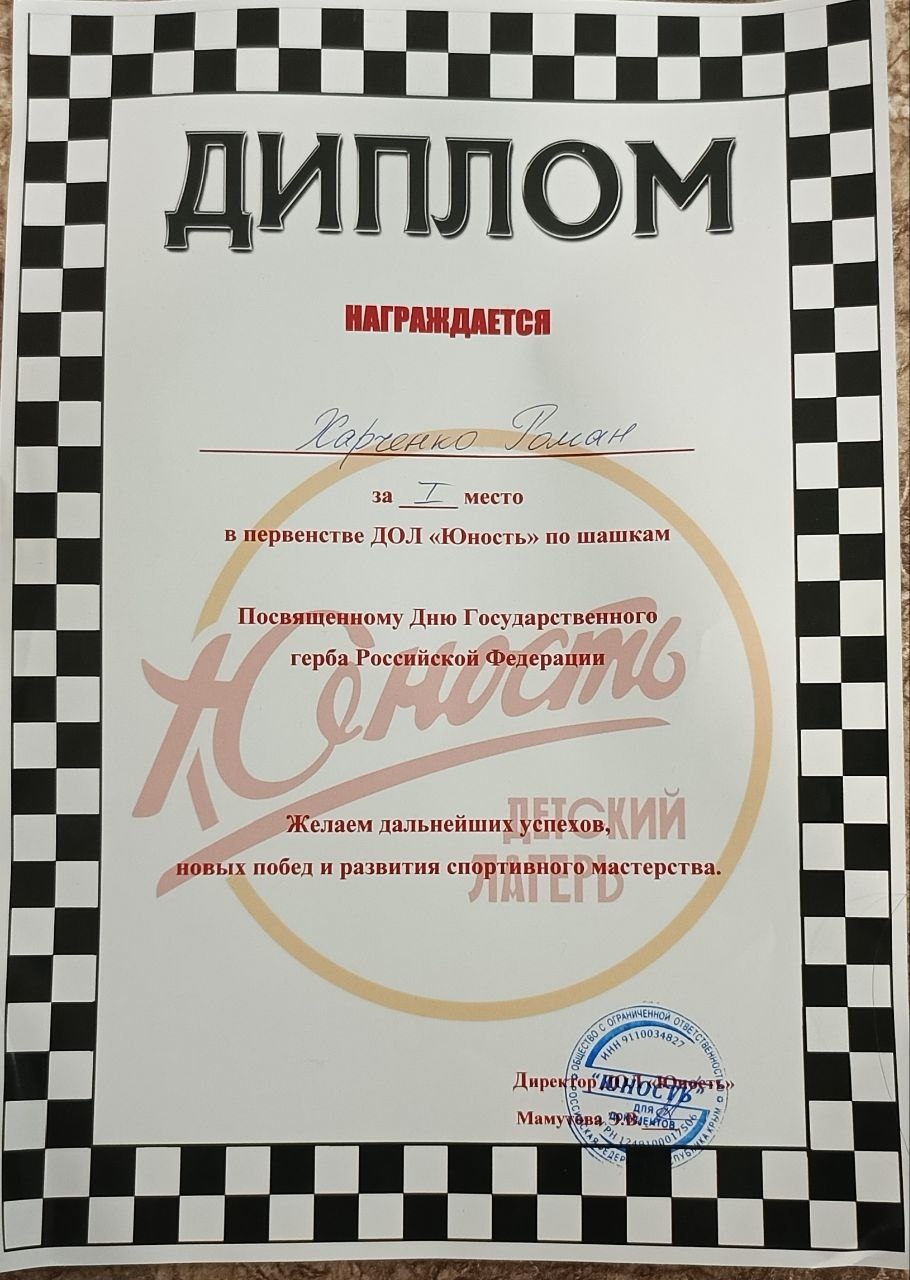В преддверии Дня государственного герба Российской Федерации кадеты 7к, 8к морских классов Ялтинской школы №7 приняли участие в первенстве ДОЛ "Юность" по шашкам.