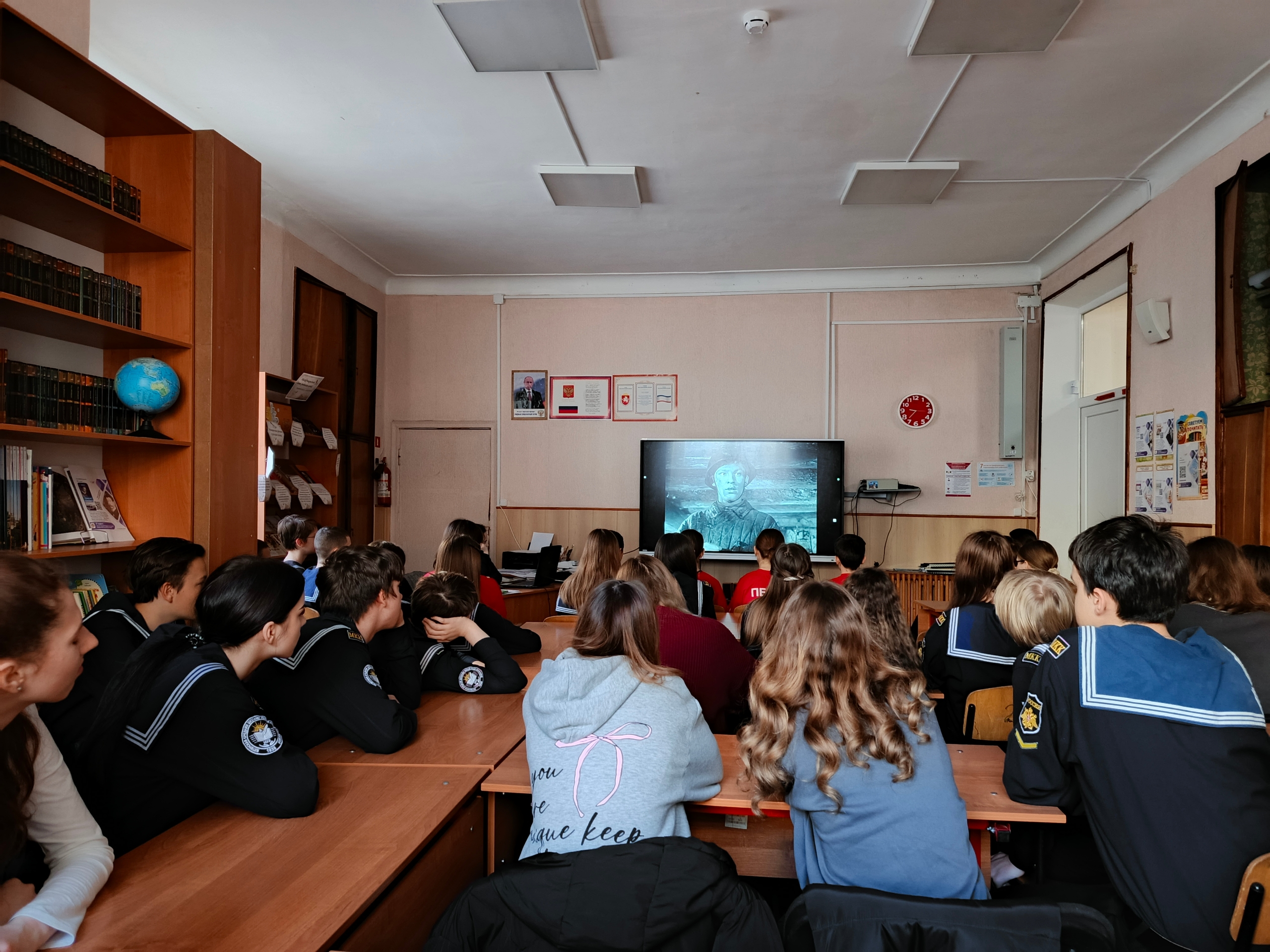 Фильм представила советник директора по воспитанию Мандрика Елизавета Владимировна, которая рассказала, что эта картина о простом человеке на большой войне.